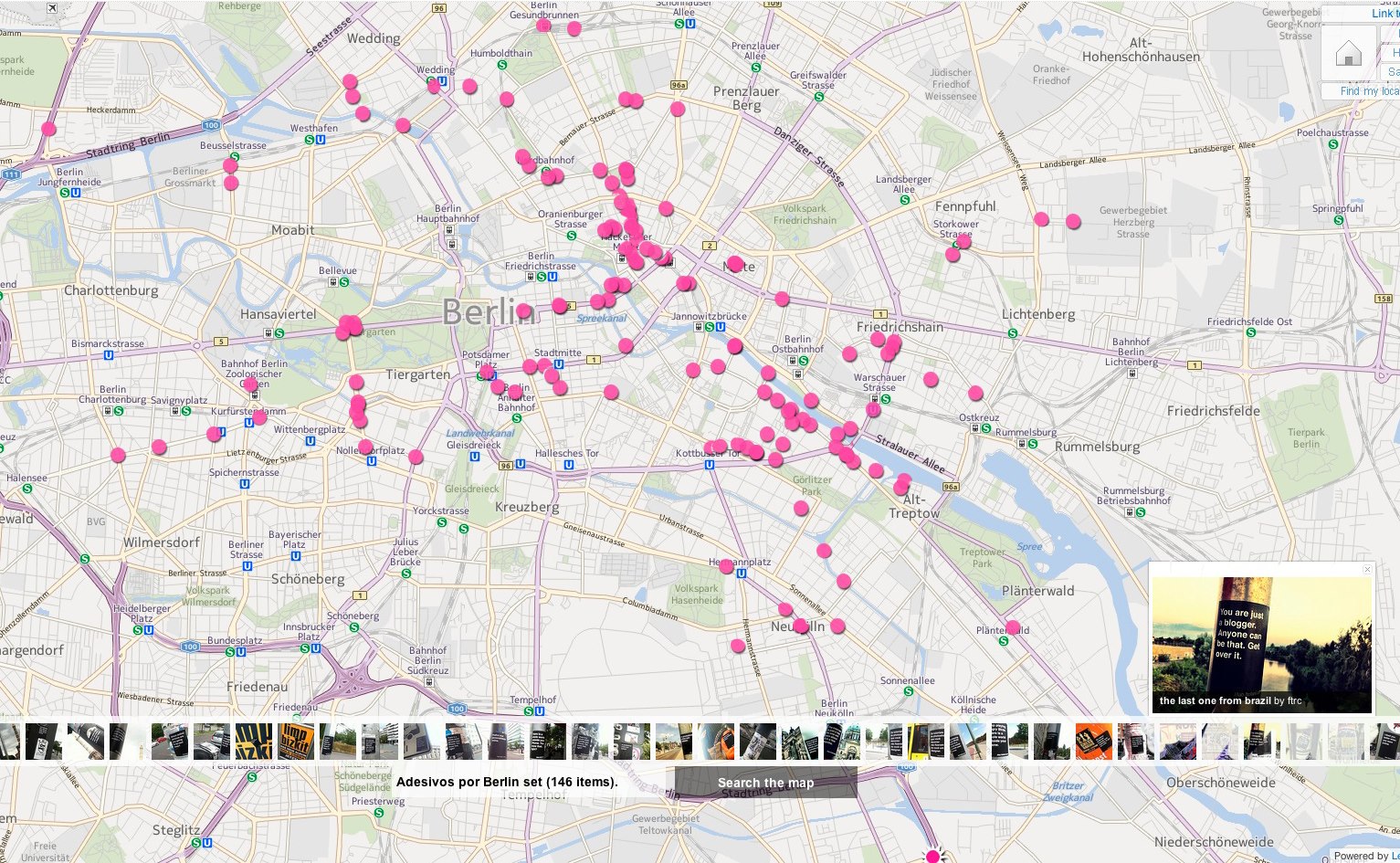 Se você prestar atenção neles, vai perceber que tem algo errado ali. É, meus adesivos não são mais pretos. A gráfica que contratei para imprimí-los não conseguiu fazer o que eu queria e resolvi ir para rua de qualquer forma já que eu queria completar o mapa de Berlin ainda em 2012.